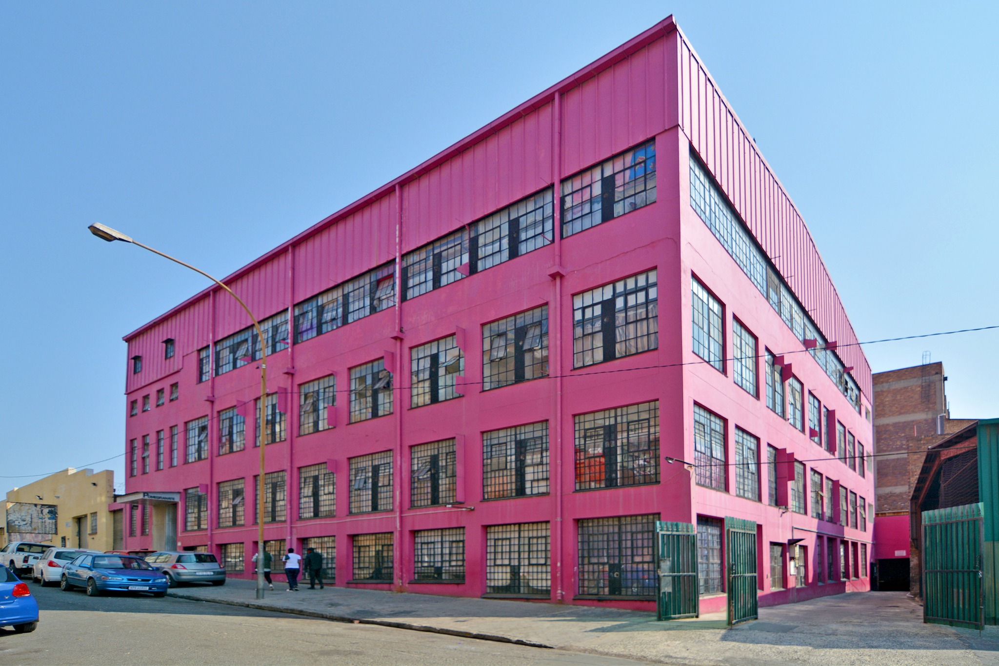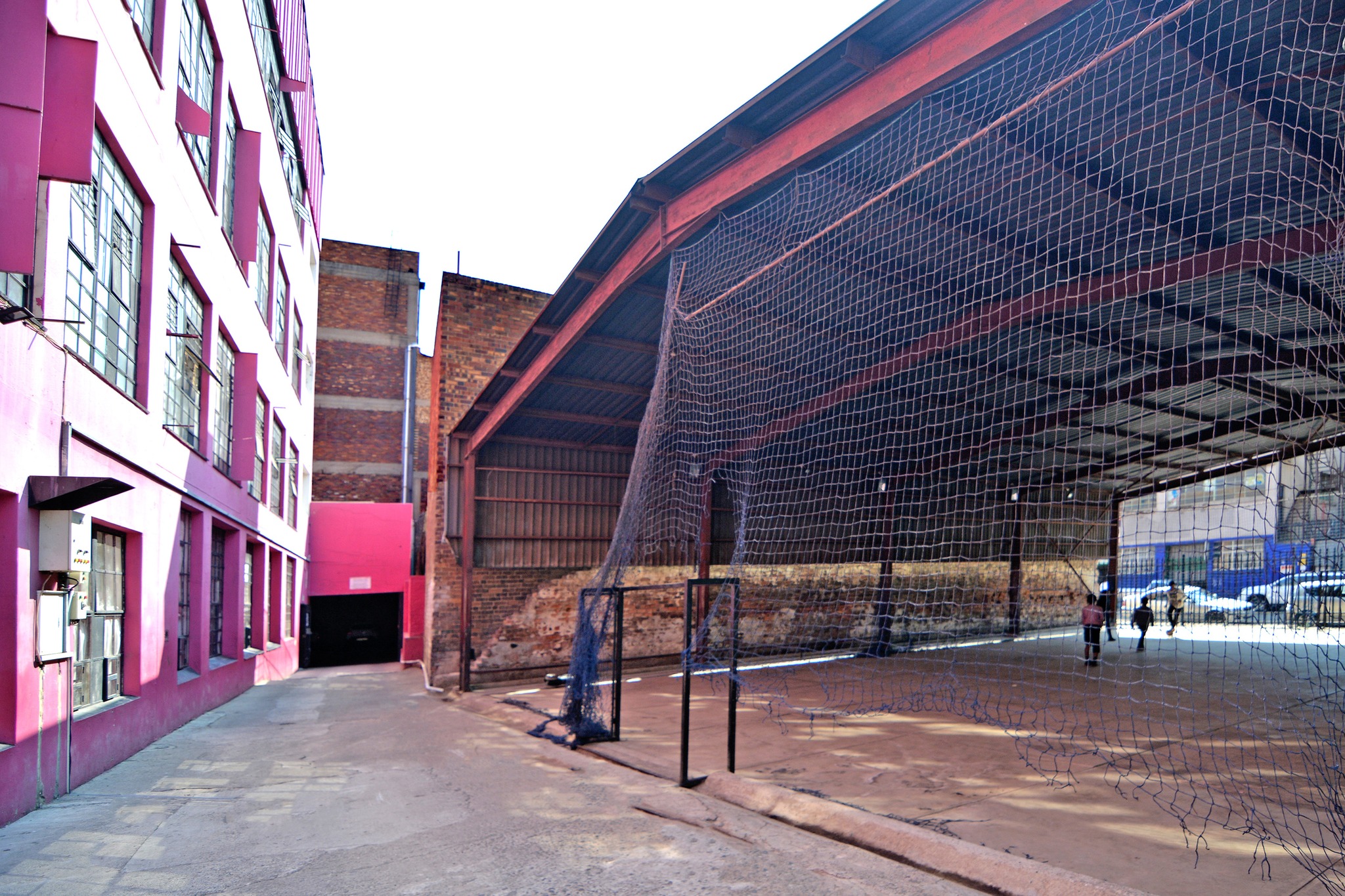 The iconic Pomegranate building, situated in Johannesburg central has become some what of a pink beacon of hope. This is supported by the tenants and close community that live there. The loft apartments blend industrial character with contemporary comfort. Double-volume ceilings, exposed brick walls, and oversized steel-framed windows flood the space with natural light, creating a bold yet welcoming atmosphere. The open-plan living area flows seamlessly into a modern kitchen